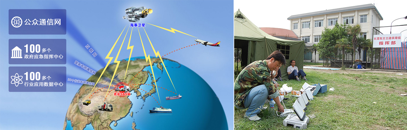 Inmarsat 的寬帶全球區域網絡服務為應急聯動和災難救助部門提供了可通過一個體積小,便于攜帶的終端實現語音和高速數據、完全獨立的陸地網絡的組合。海事衛星在災難反應的第一時間提供順暢的通信,而不必顧及陸地網絡被損壞。海事衛星可以確保進入救災現場使用不同通信設備的各個救火員、警察和應急人員協同工作。